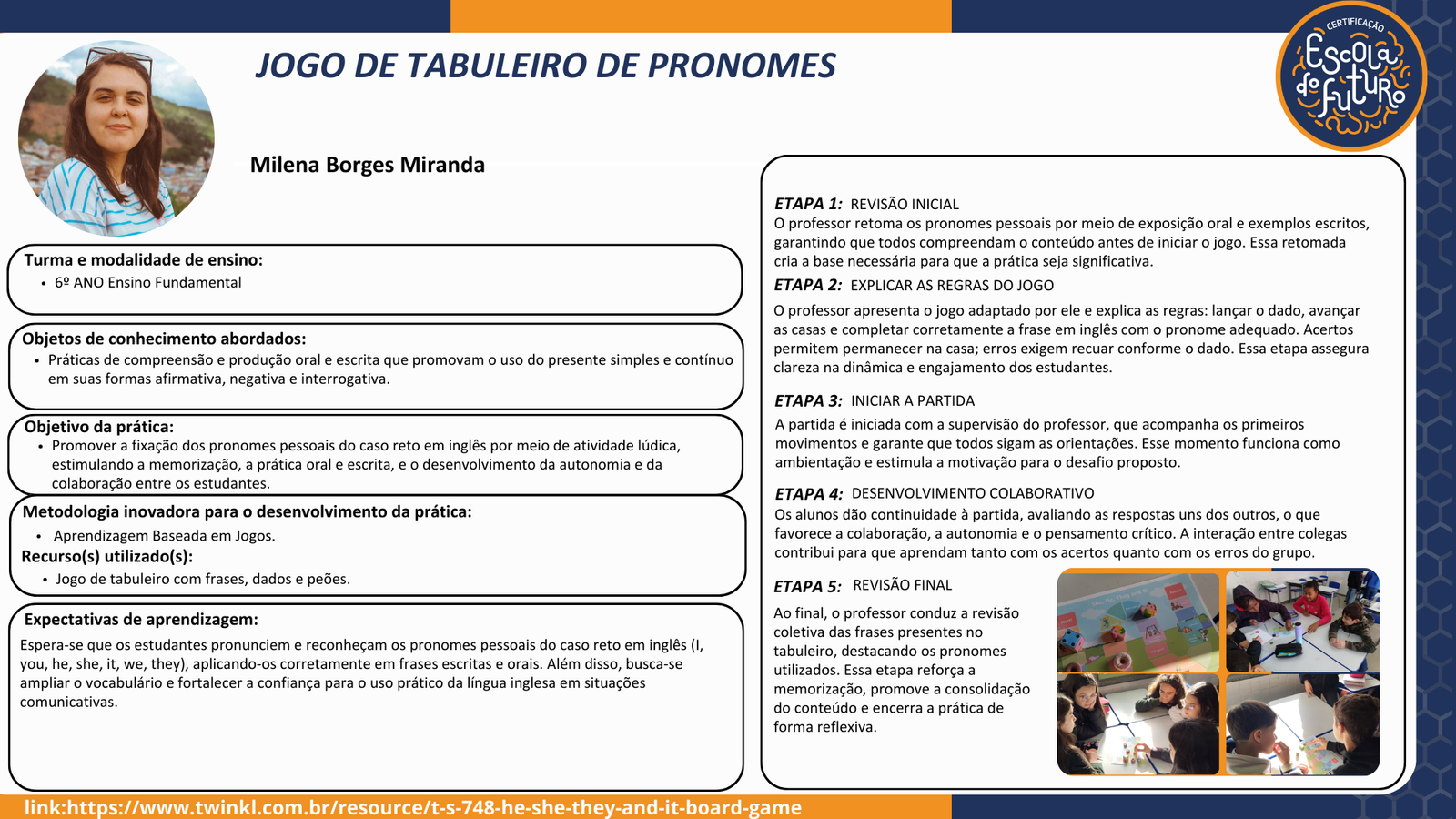 Jogo de tabuleiro de pronomes